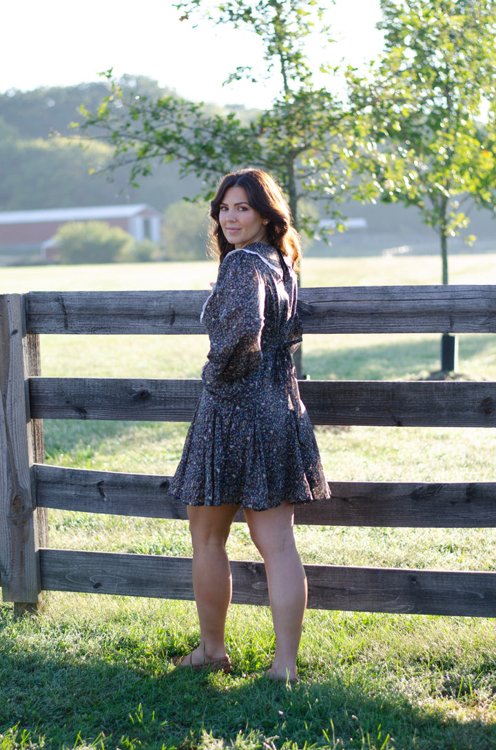 The Penelope Dress — sweet and playful with a touch of detail. Featuring a classic collar with eyelet trim, a flared full mini skirt, and a side zipper for easy wear. The adjustable waist tie lets you find the perfect fit, making it a flattering choice. Adorable dressed up with heels or Mary Janes or dressed down with cowboy boots for a more casual look.